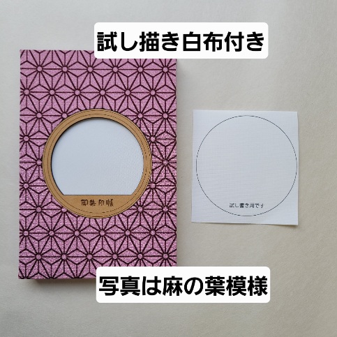 手触りの良いおにちりめんの表紙に木枠の丸窓をはめ込んだ御朱印帳です。窓の中は自分で描けるように無地の白い布が貼ってあります。木枠は丸の下のほうに「御朱印帳」のタイトルが彫刻されたデザイン。自由な発想でオリジナルの御朱印帳を作ってみませんか?油性のペンで描けます。油性ペンは付いておりません。試し書き用の布が附属していますので他の筆記具などでテストもできます。表紙の色は10色以上あります。中は日本製の奉書紙のじゃばら式折本(24折48頁)で一般的な御朱印帳の大判サイズです。