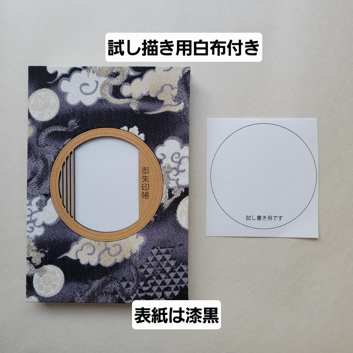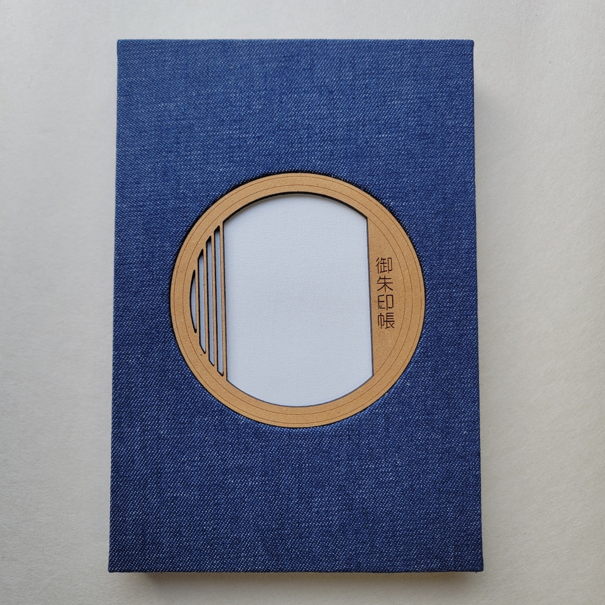 手触りの良いおにちりめんの表紙に木枠の丸窓をはめ込んだ御朱印帳です。窓の中は自分で描けるように無地の白い布が貼ってあります。木枠は左に格子、右に「御朱印帳」のタイトルが彫刻されたデザイン。自由な発想でオリジナルの御朱印帳を作ってみませんか?油性のペンで描けます。油性ペンは付いておりません。試し書き用の布が附属していますので他の筆記具などでテストもできます。表紙の色は10色以上あります。中は日本製の奉書紙のじゃばら式折本(24折48頁)で一般的な御朱印帳の大判サイズです。